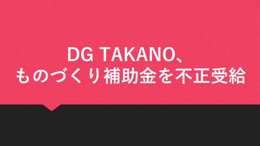 概要 2025年11月8日、DG TAKANOはものづくり補助金の不正受給を会計検査院より指摘を受けたことについて謝罪を行った。 同社は2024年9月に、食器開発に関するものづくり補助事業(補助対象事業費21,070,000円)を実施したとする実績報告書を提出し、ものづ... -