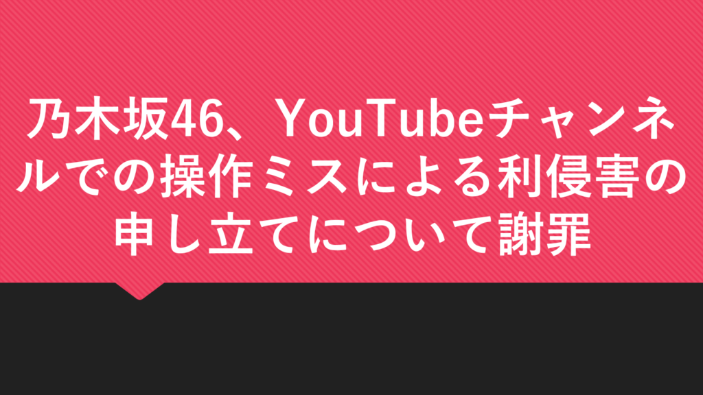 乃木坂46、YouTubeチャンネルでの操作ミスによる利侵害の申し立てについて謝罪