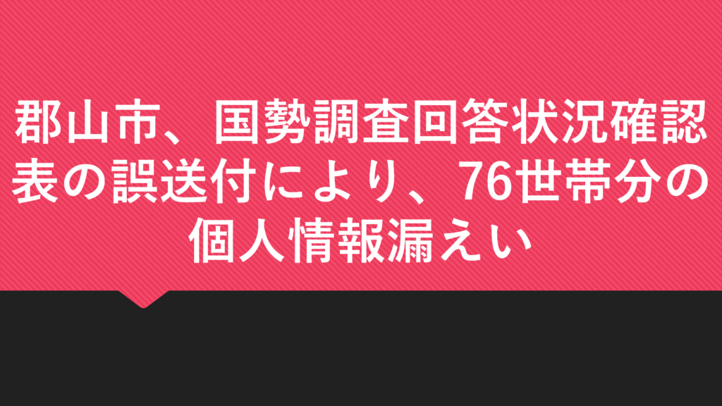 郡山市、国勢調査回答状況確認表の誤送付により、76世帯分の個人情報漏えい