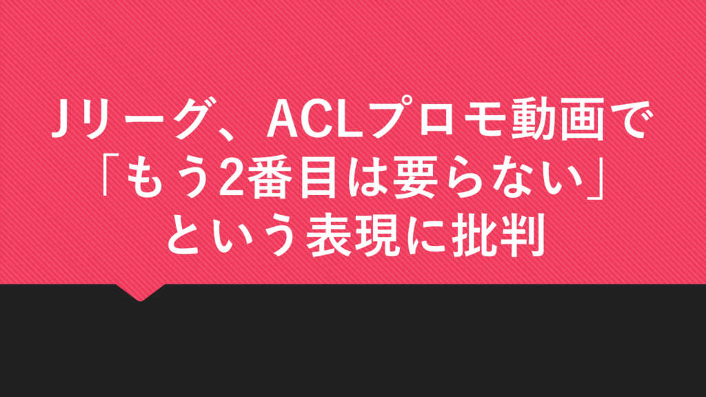 Jリーグ、ACLプロモ動画で「もう2番目は要らない」という表現に批判