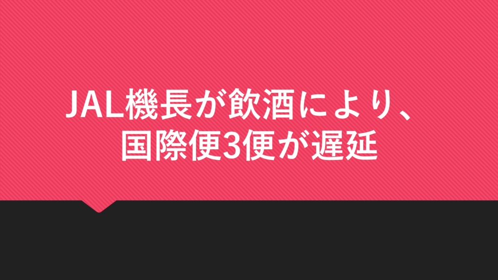 概要 2025年8月28日、JALの男性機長(64歳)が滞在先で過度な飲酒を行い、その影響により乗務できなくなった。この結果、機長が乗務予定だった国際線を含む計3便に遅延が発生した。 2025年9月10日、国土交通省はJALの管理監督が不十分だったとして厳重注意... -