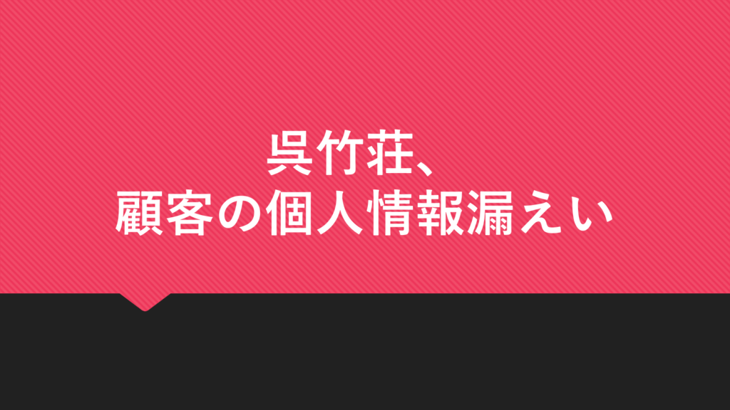 概要 2025年9月12日、呉竹荘は運営する2つのホテルが利用する宿泊予約情報管理システムにおいて個人情報が漏えいした可能性があると発表。 2025年9月9日午前3時ごろ、「Kuretake Inn & Hotels & Apartments - 予約情報」というタイトルの、フィッ... -