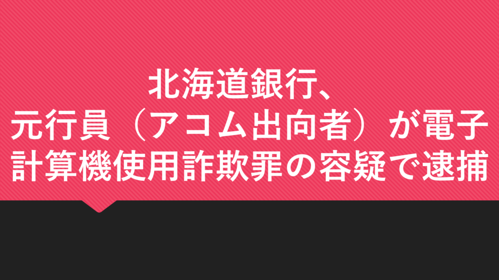 北海道銀行、元行員(アコム出向者)が電子計算機使用詐欺罪の容疑で逮捕