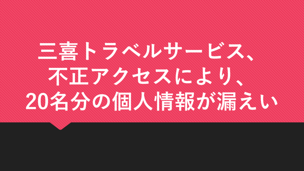 三喜トラベルサービス、不正アクセスにより、国内学会宿泊予約サイトから20名分の個人情報が漏えい