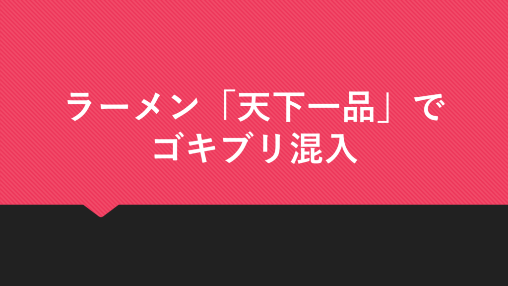 概要 2025年8月24日、ラーメンチェーン天下一品新京極三条店(京都市中京区)で客に提供したラーメンに、体長約1センチのゴキブリの死骸が混入していた。 天下食品商事は、新京極三条店とオーナーが同じ河原町三条店の営業を停止。 原因仮説 店舗全体の衛... -