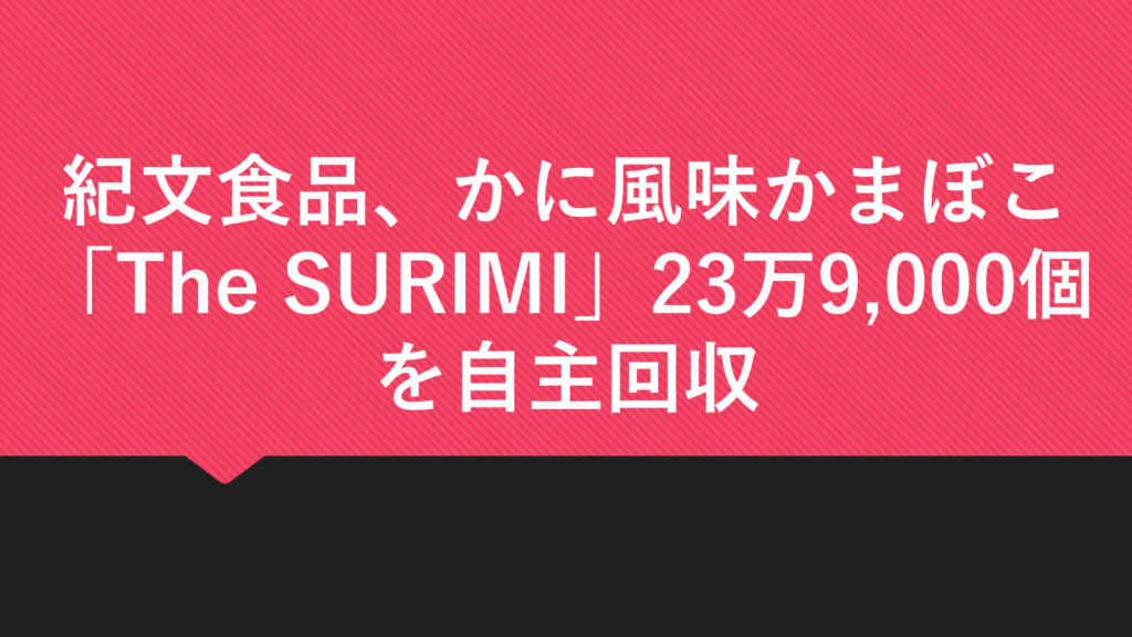 紀文食品、かに風味かまぼこ「The SURIMI」23万9,000個を自主回収