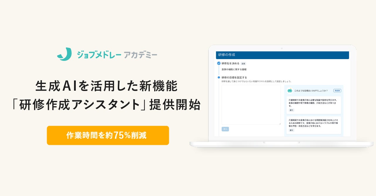 メドレーは2023年5月18日、介護・障がい福祉事業所向けのオンライン動画研修サービス「ジョブメドレーアカデミー」に、Azure OpenAI ServiceのGPTモデルを活用した「研修作成アシスタント」機能の提供を開始しました。