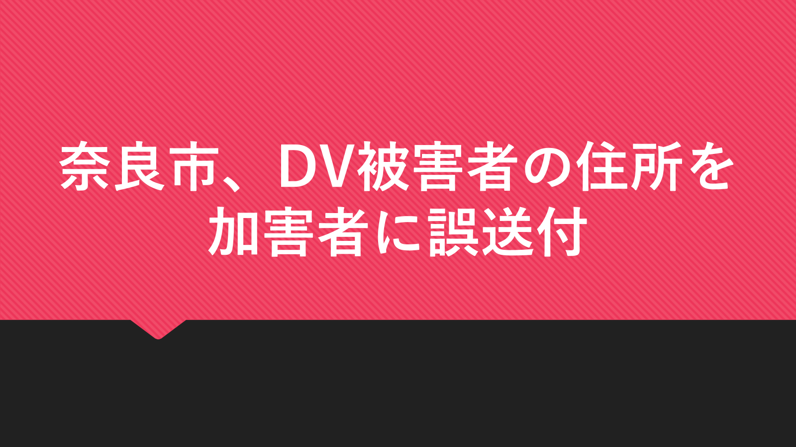 2025年10月6日奈良市は、市内の幼保施設に通うDV被害者の住所が記載された書類を、誤って加害者に誤送付してしまったことを報告。
