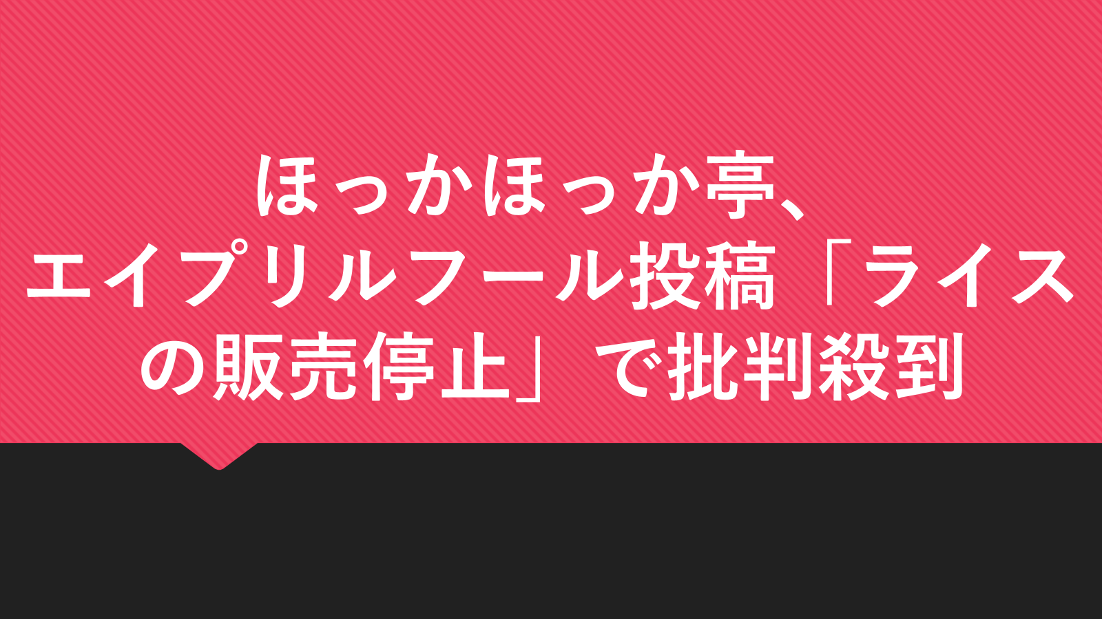 問題となったポストは、エイプリルフール企画として投稿された「本日より全国のほっかほっか亭 全店舗にてライスの販売を停止します。」という内容が含まれていた。さらに同ポストを引用する形で、同社「総本部取締役・佐藤健輔」名義で、「米の価格高騰を鑑みて、全国のほっかほっか亭全店でのライスの販売を停止します」「ライスの代わりといってはなんですが、おかずトリオやオードブルをご購入いただけますと幸甚です」という画像付きのポストが投稿された。