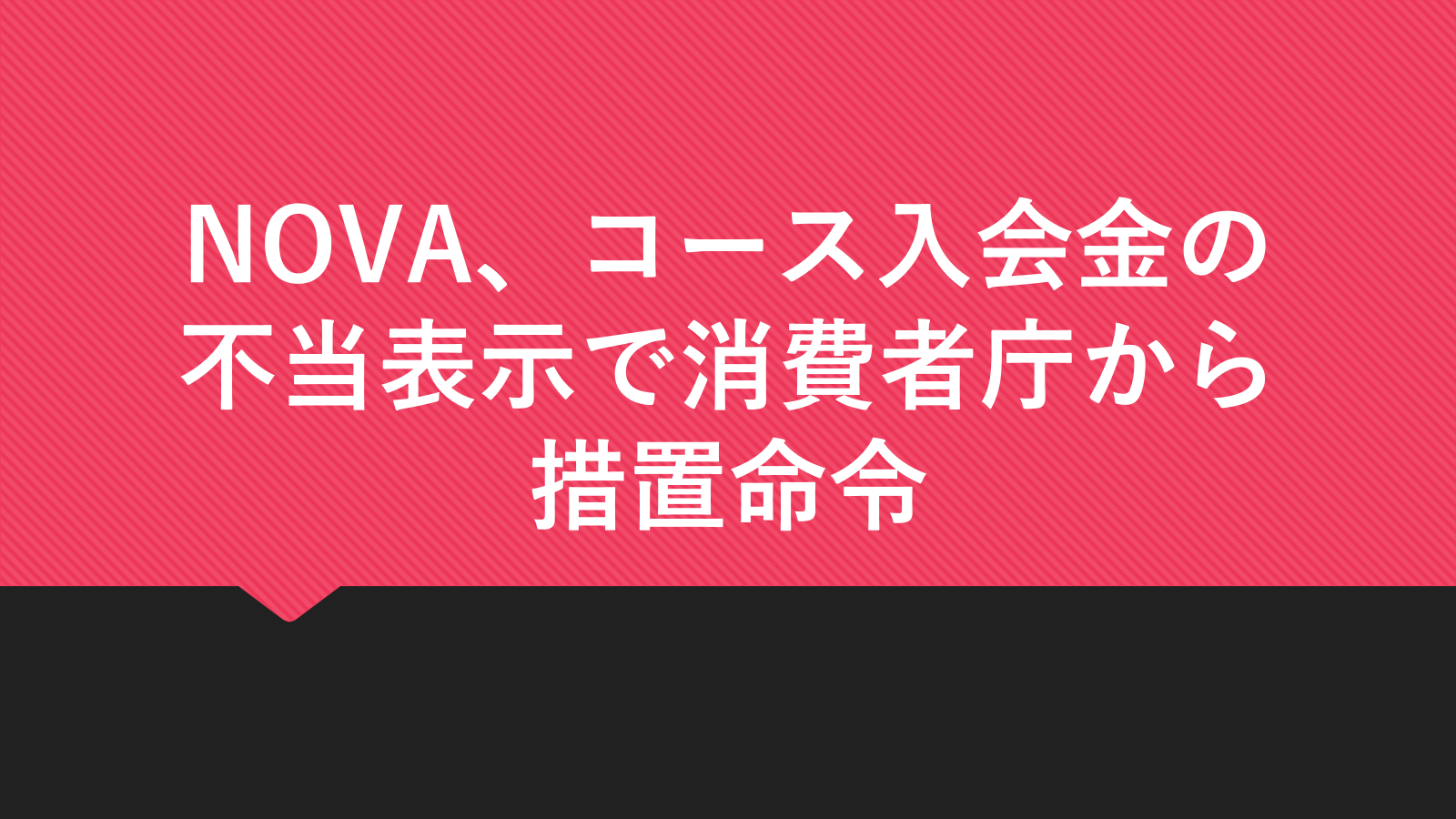 消費者庁は2025年10月17日、NOVAランゲージカンパニーに対し、「NOVA」英会話教室のコース表示に関して、景品表示法違反(有利誤認表示)で措置命令を出した。