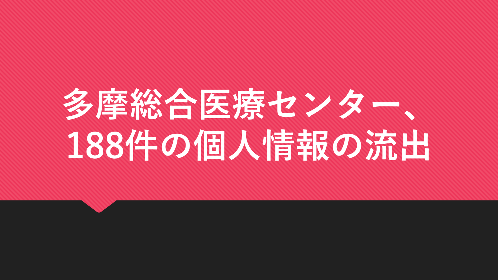2025年10月22日、東京都立多摩総合医療センターは計188件の個人情報が流出したことを報告。