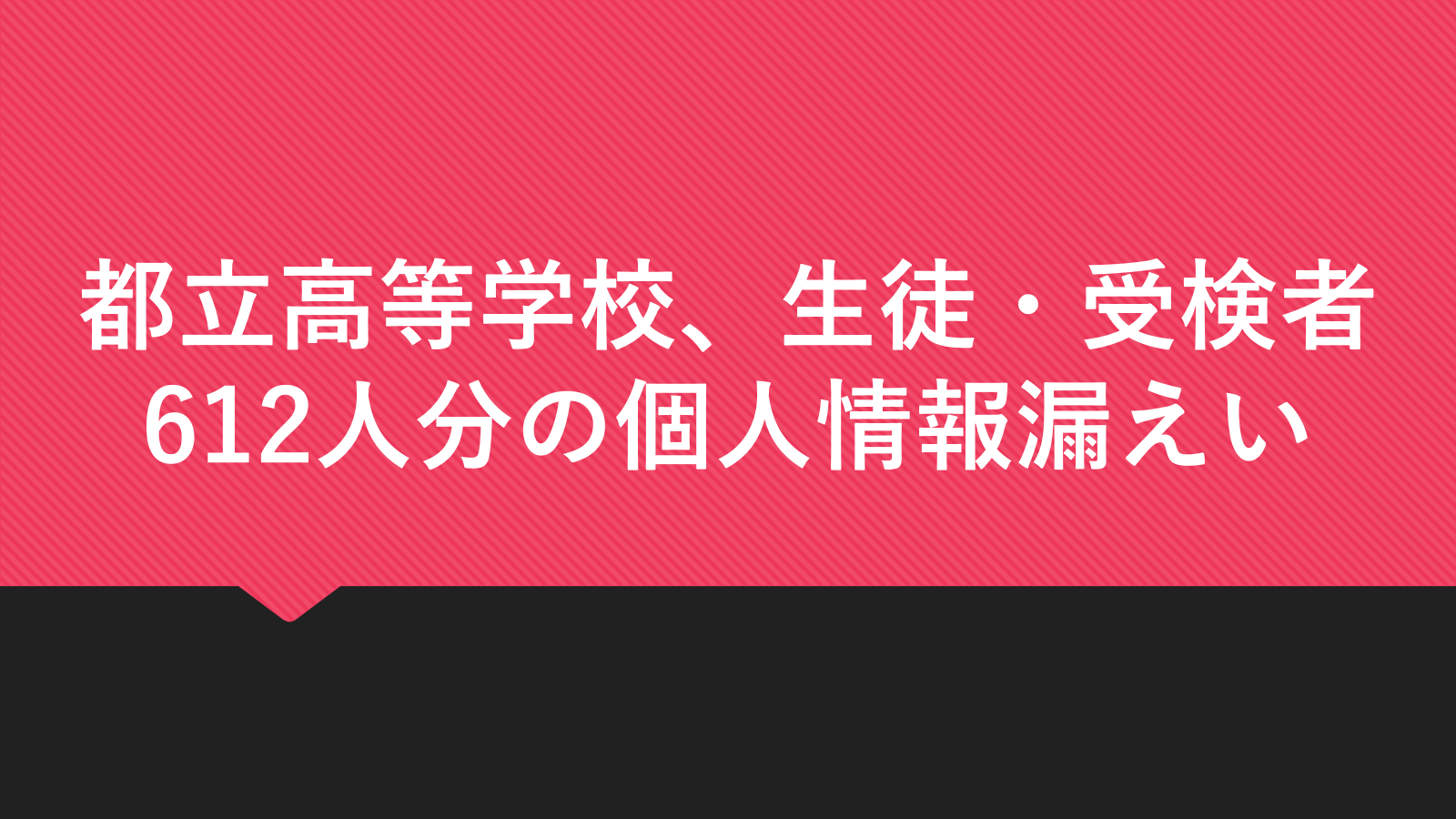 東京都教育委員会は2025年11月19日、都立高等学校の教員及び生徒が使用する情報共有ツール上で情報漏えいが発生したことを報告、謝罪を行った。当該校の令和7年度入試選抜受検者合格者・不合格者と、現2年生の個人情報621人分が掲載され、一定の期間、当該校の全教員・生徒が閲覧できる状態となっていた。