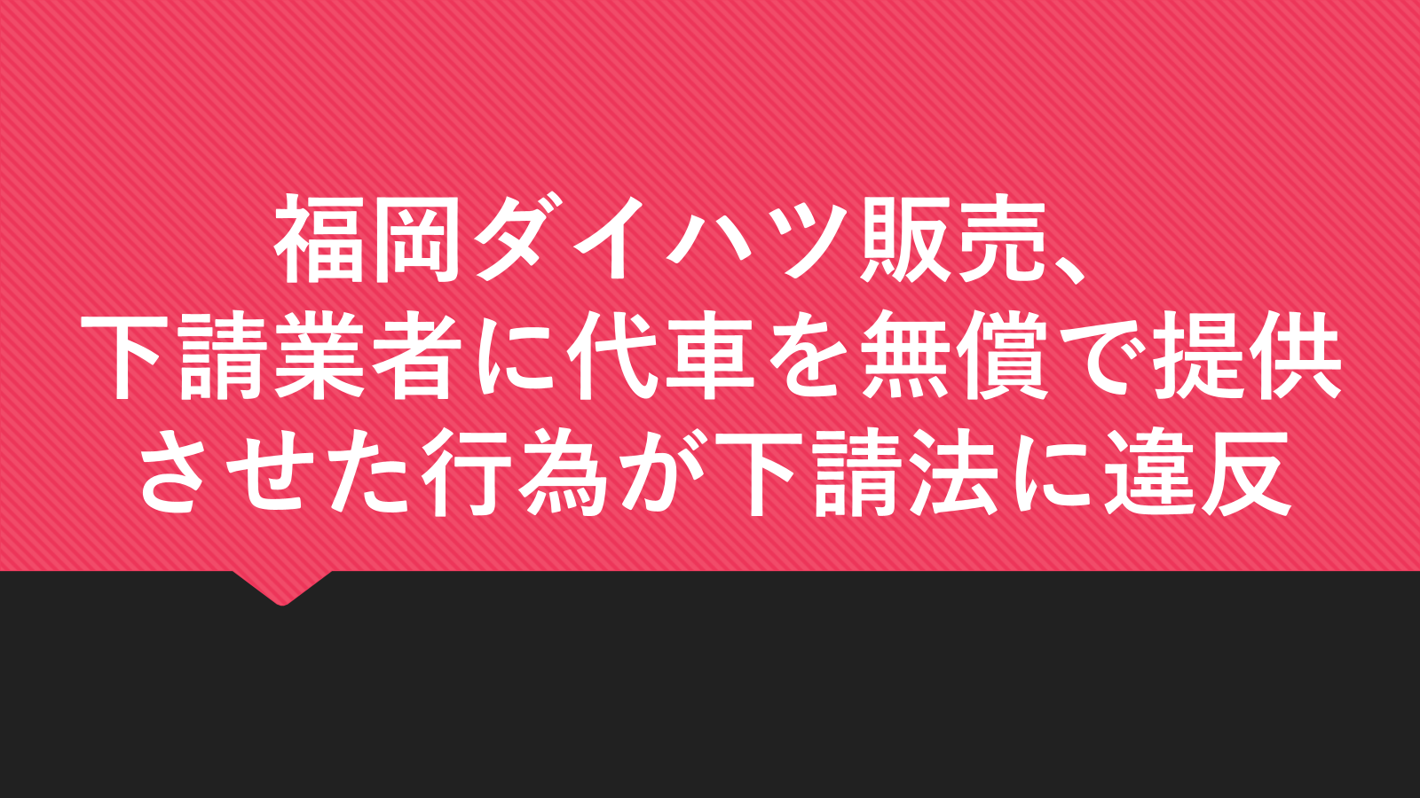 2025年11月27日、公正取引委員会は福岡ダイハツ販売に対して、下請代金支払遅延等防止法(下請法)第4条第2項第3号(不当な経済上の利益の提供要請の禁止)に掲げる行為に該当するとして勧告を行った。