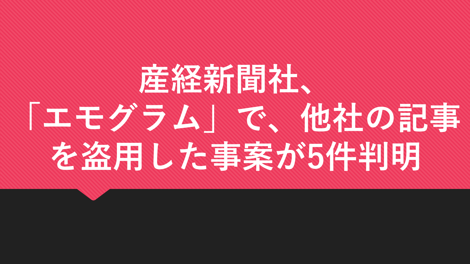 2025年12月2日、産経新聞社が運営するトレンド情報メディア「emogram(エモグラム)」で他社の記事を盗用した事案が5件判明し、運営元が謝罪した。