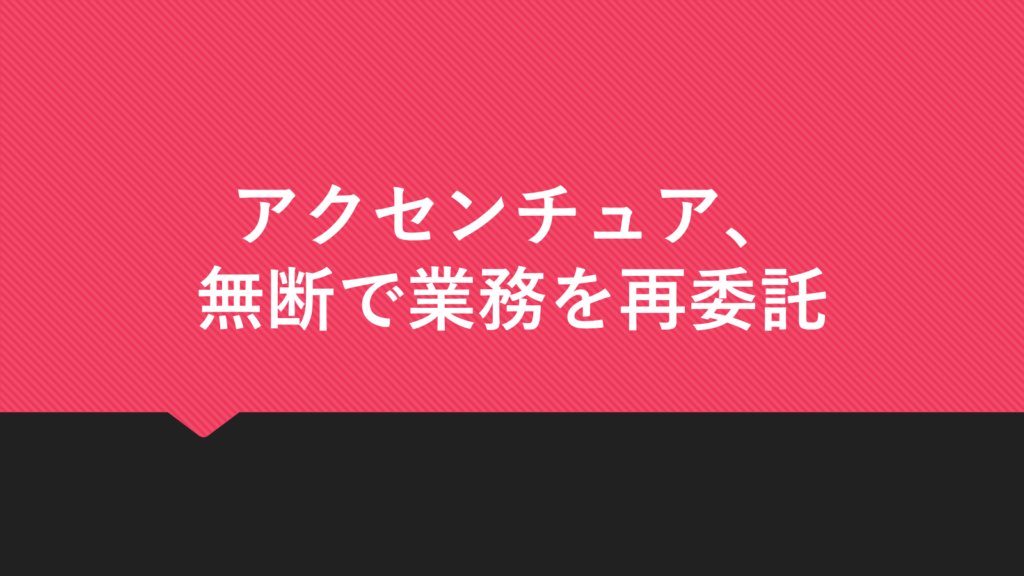 概要 アクセンチュアの日本法人が、デジタル庁から2025年9月26日から2026年1月25日までの期間、指名停止措置を受けた。 契約書に定める再委託等の申請を行うことの必要性を認識していたにもかかわらず、他数社へデジタル庁の承認を得ずに再委託等を行うな...